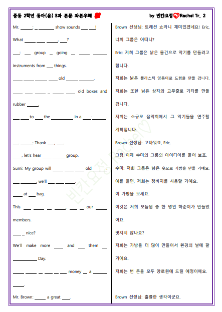 | 중2 동아윤 3과 본문 전체 빈칸문제 (0) | 2023.04.28 |