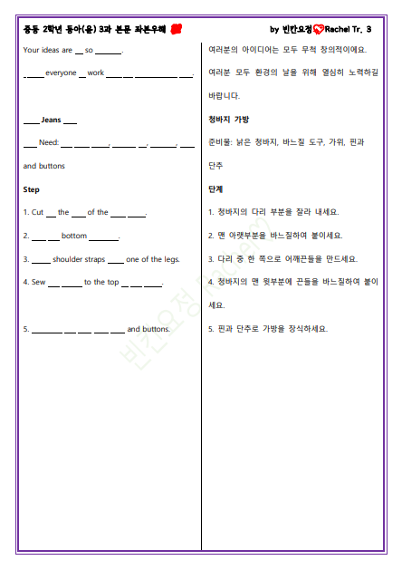 | 중2 동아윤 3과 본문 전체 빈칸문제 (0) | 2023.04.28 |