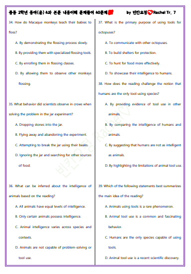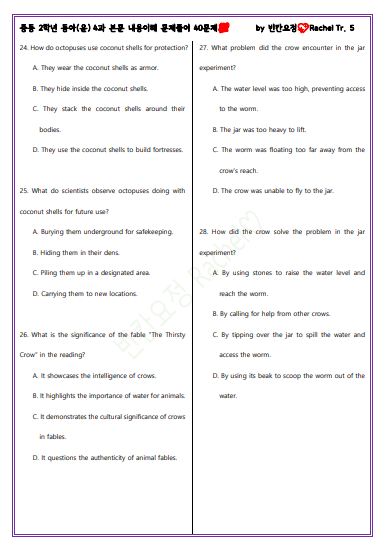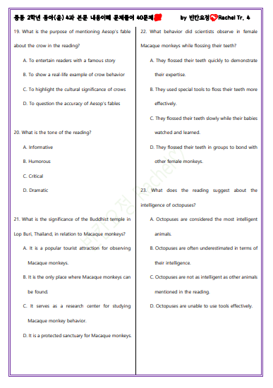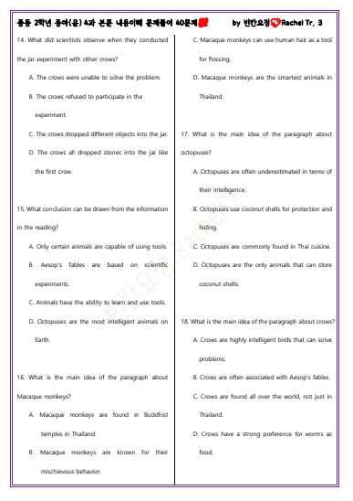| 중2 동아윤 3과 본문 내용이해 문제풀이 43문제 (정답포함) (0) | 2023.06.16 |