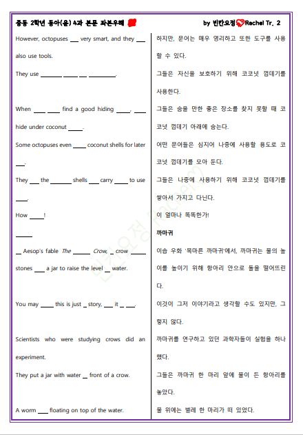 | 중2 동아윤 4과 본문 빈칸문제(중간버전) (0) | 2023.04.29 |