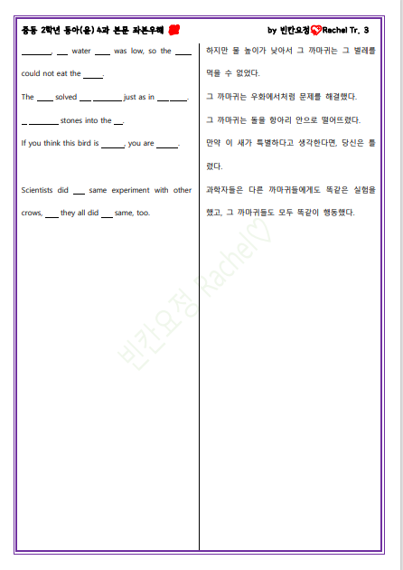 | 중2 동아윤 3과 본문 전체 빈칸문제 (0) | 2023.04.28 |