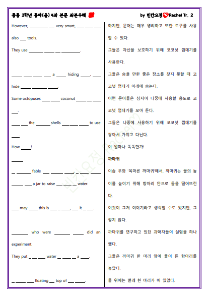 중2 동아윤 4과 본문 빈칸문제(중간버전)
