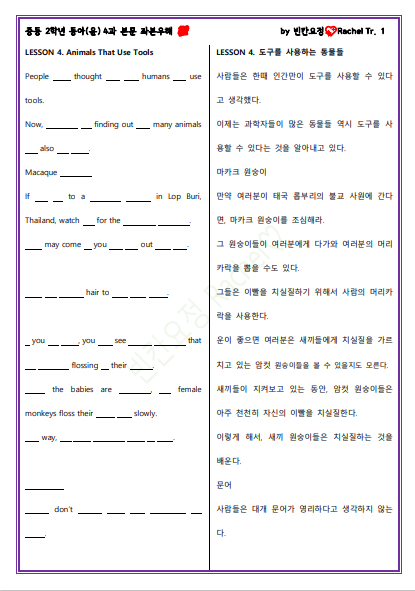 | 중2 동아윤 4과 본문 전체 빈칸문제 (0) | 2023.04.29 |