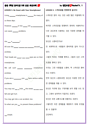 | 중2 동아윤 6과 본문 빈칸문제(쉬운버전) (0) | 2023.08.27 |