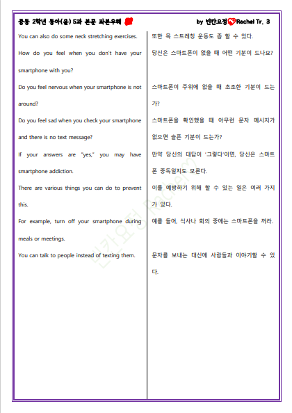 | 중2 동아윤 5과 본문 해석쓰기 (0) | 2023.08.14 |