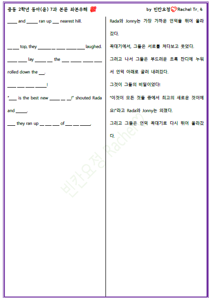 | 중2 동아윤 7과 본문 빈칸문제(쉬운버전) (0) | 2023.10.29 |