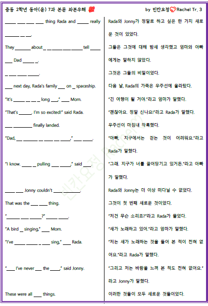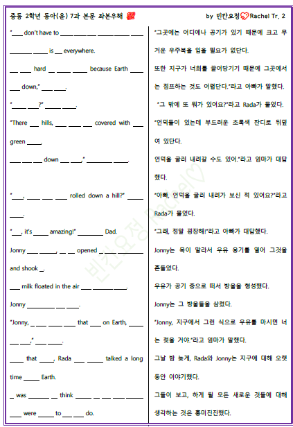 중2 동아윤 7과 본문 빈칸문제(중간버전)