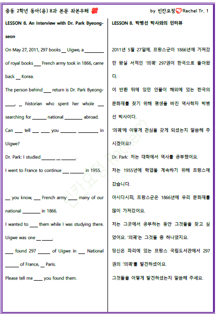 중2 동아윤 8과 본문 빈칸문제(중간버전) (1) | 2023.10.30 |