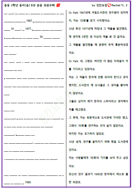 | 중2 동아윤 8과 본문 빈칸문제(중간버전) (1) | 2023.10.30 |