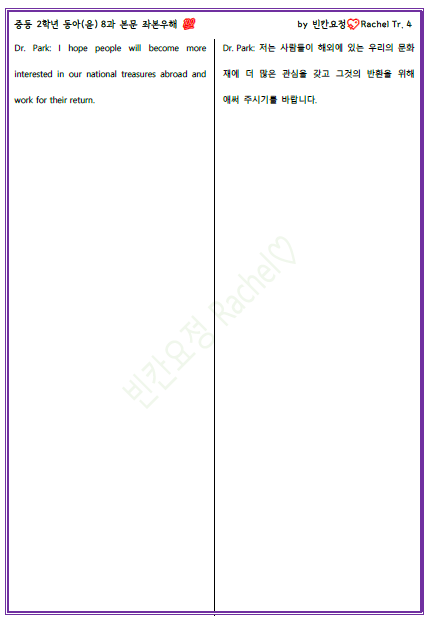| 중2 동아윤 8과 본문 빈칸문제(중간버전) (1) | 2023.10.30 |