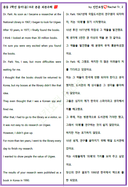 | 중2 동아윤 7과 본문 해석쓰기 (0) | 2023.10.29 |