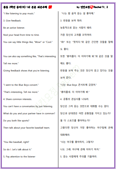 중2 동아이 1과 본문 좌본우해