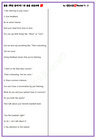 중2 동아이 1과 본문 해석쓰기