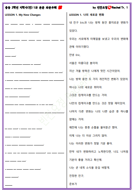 | 중2 지학사민 1과 본문 빈칸문제(중간버전) (0) | 2024.01.12 |