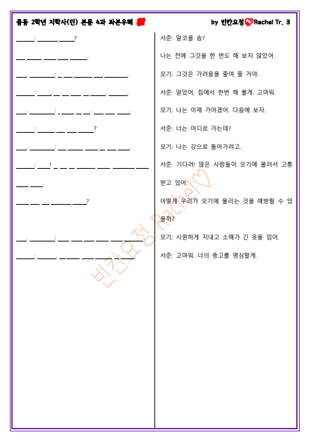 중2 지학사민 4과 본문 빈칸문제(중간버전) (0) | 2023.06.09 |