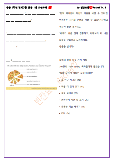 | 중2 천재(이) 1과 본문 해석쓰기 (0) | 2023.04.15 |