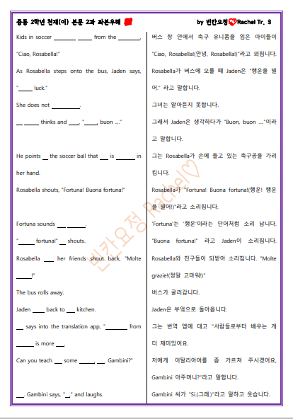 중2 천재이 2과 본문 빈칸문제(쉬운버전)