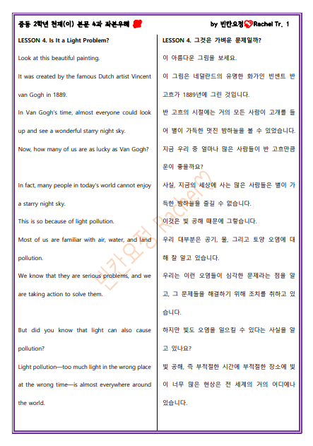 중2 천재이 4과 본문 빈칸문제(쉬운버전)