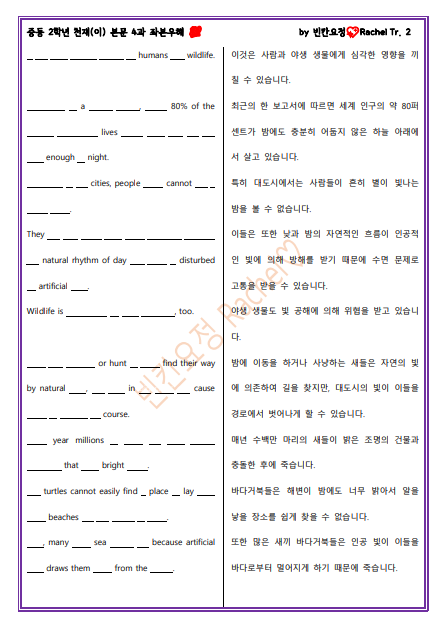 중2 천재이 4과 본문 전체 빈칸문제 (0) | 2023.05.15 |