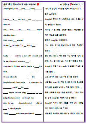 | 중2 천재이 5과 본문 전체 빈칸문제 (0) | 2023.10.11 |