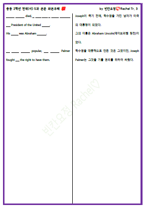 중2 천재이 5과 본문 전체 빈칸문제 (0) | 2023.10.11 |