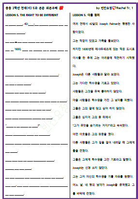 | 중2 천재이 5과 본문 빈칸문제(중간버전) (0) | 2023.10.11 |