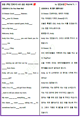 | 중2 천재이 6과 본문 전체 빈칸문제 (0) | 2023.11.07 |