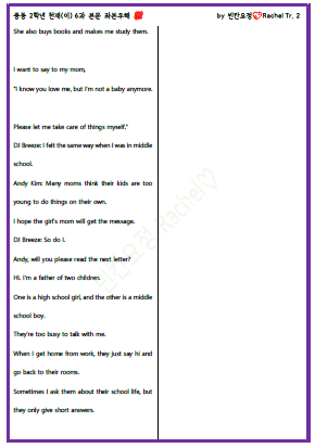| 중2 천재이 6과 본문 전체 빈칸문제 (0) | 2023.11.07 |