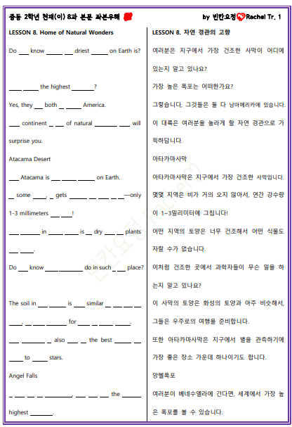 중2 천재이 8과 본문 전체 빈칸문제 (0) | 2023.11.25 |