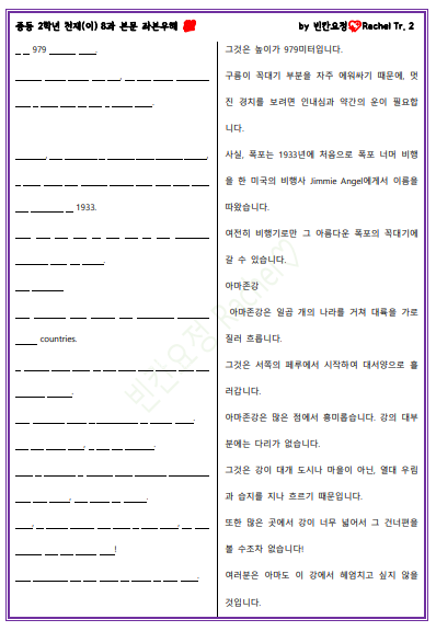 | 중2 천재이 8과 본문 빈칸문제(쉬운버전) (0) | 2023.11.25 |