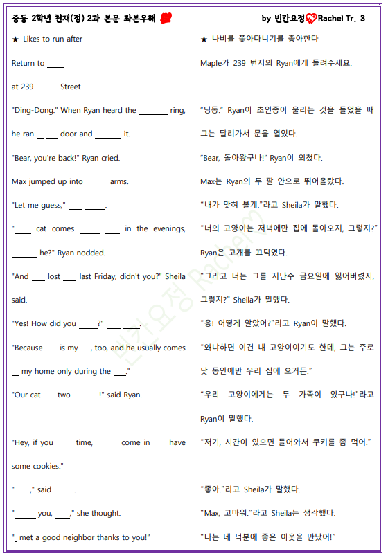 | 중2 천재정 2과 본문 전체 빈칸문제 (0) | 2024.02.21 |