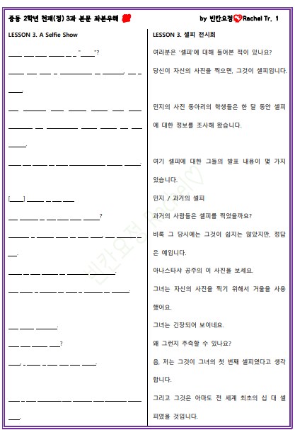 | 중2 천재정 3과 본문 해석쓰기 (0) | 2024.02.23 |