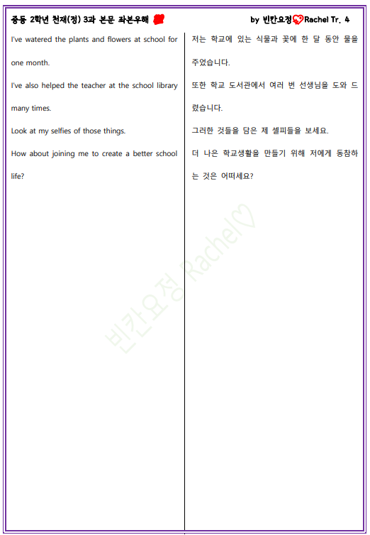 | 중2 천재정 2과 본문 해석쓰기 (0) | 2024.02.22 |