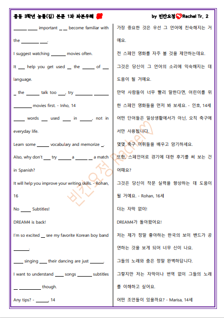 | 중3 능률김 1과 본문 전체 빈칸문제 (0) | 2023.04.22 |