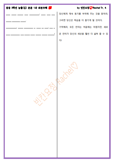 | 중3 능률김 1과 본문 빈칸문제(쉬운버전) (0) | 2023.04.22 |