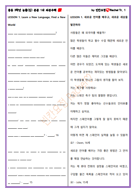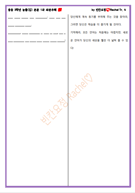 | 중3 능률김 1과 본문 빈칸문제(쉬운버전) (0) | 2023.04.22 |
