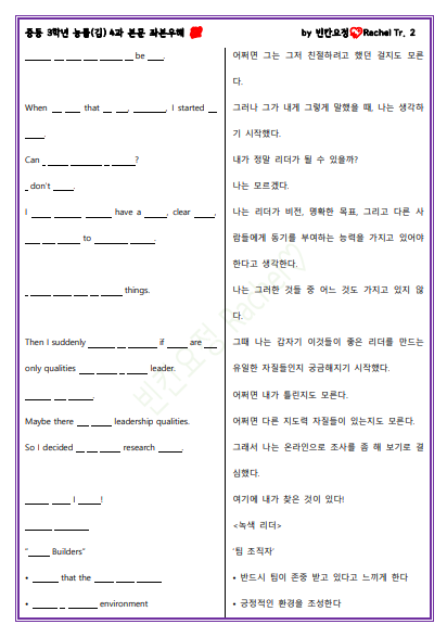 | 중3 능률김 4과 본문 전체 빈칸문제 (0) | 2023.05.11 |