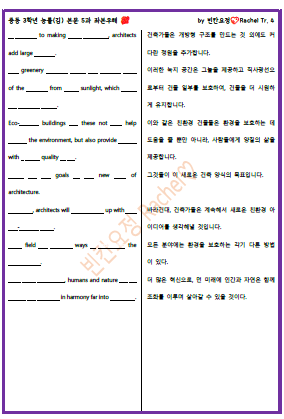 | 중3 능률김 5과 본문 전체 빈칸문제 (0) | 2023.09.08 |
