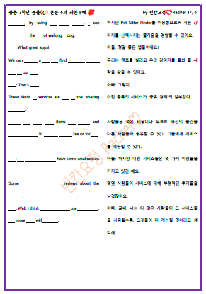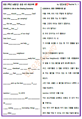 | 중3 능률김 6과 본문 빈칸문제(쉬운버전) (0) | 2023.09.09 |