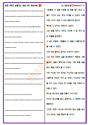 | 중3 능률김 7과 본문 해석쓰기 (1) | 2023.09.30 |