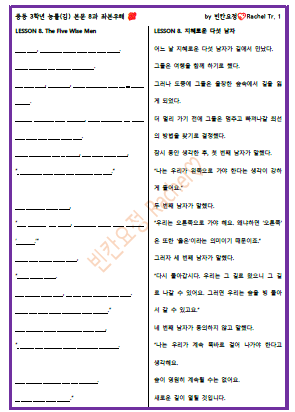 | 중3 능률김 8과 본문 빈칸문제(중간버전) (0) | 2023.09.15 |