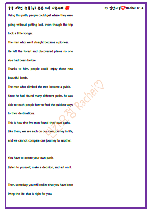 | 중3 능률김 8과 본문 빈칸문제(쉬운버전) (0) | 2023.09.14 |