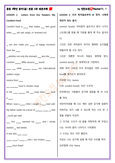 | 중3 동아(윤) 1과 본문 해석쓰기 자료 (0) | 2023.04.15 |