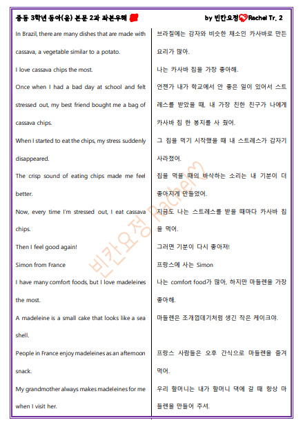 | 중3 동아(윤) 1과 본문 해석쓰기 자료 (0) | 2023.04.15 |