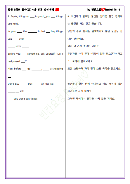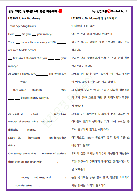 | 중3 동아윤 3과 본문 전체 빈칸문제 (0) | 2023.05.01 |