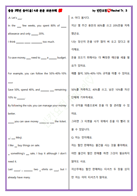 | 중3 동아윤 4과 본문 빈칸문제(중간버전) (0) | 2023.05.02 |