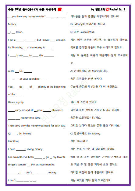 | 중3 동아윤 3과 본문 전체 빈칸문제 (0) | 2023.05.01 |