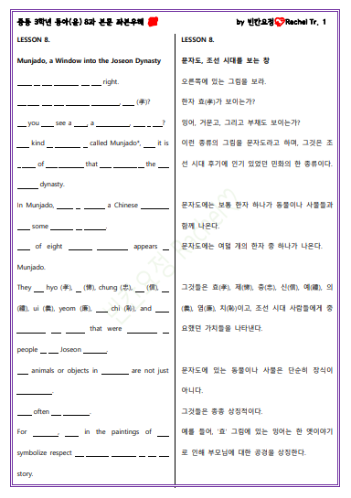 | 중3 동아윤 8과 본문 전체 빈칸문제 (0) | 2023.09.02 |