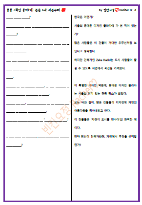 | 중3 동아이 6과 본문 해석쓰기 (1) | 2023.09.18 |