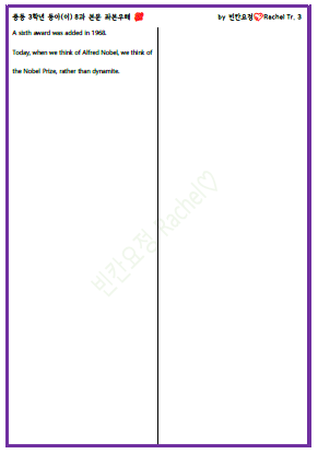 | 중3 동아이 8과 본문 전체 빈칸문제 (0) | 2023.09.23 |